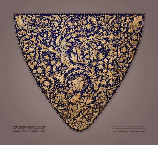 En el Cabildo General Extraordinario celebrado el 14 de febrero en la Capilla, fueron presentados a los hermanos los resultados del proyecto de reconstrucción del antiguo manto procesional de Nuestra Señora del Mayor Dolor en su Soledad: una obra excepcional realizada en 1886 por el taller de las hermanas Antúnez bajo diseño de Emigdio Serrano Dávila, considerado en su momento “el que ostenta mayor riqueza y lujo de cuantos hasta ahora se han visto en Sevilla”, lamentablemente desaparecido en un incendio en 1955.