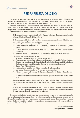 • el Hermano solicitará a la mayordomía la Pre-Papeleta de Sitio, el plazo para estas solicitudes