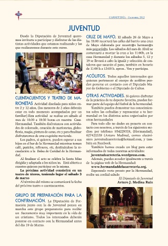 RIONETAS actividad diseñada para niños en- mar parte del equipo del futbol de la hermandad.