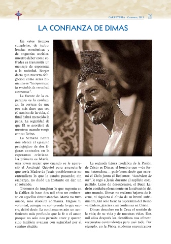 rre, debió decir. La confianza es aún un sen- Dimas descubre en la Cruz el sentido de