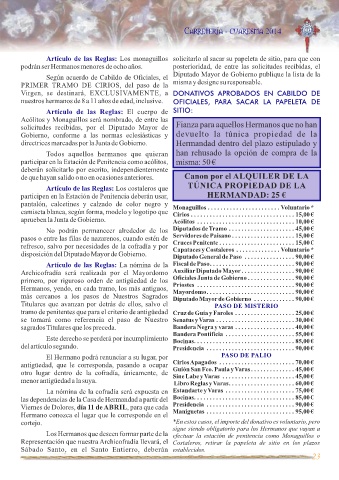 La nómina de la cofradía será expuesta en Estandarte y Varas . . . . . . . . . . . . . . . . . . . . . . 75,00 €