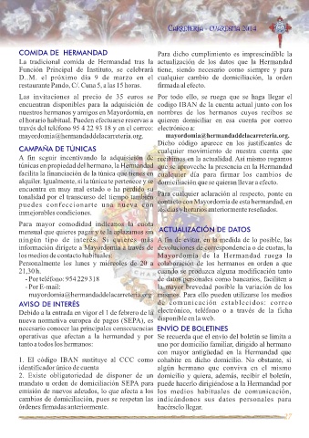 los medios de contacto habituales: Mayordomía de la Hermandad ruega la