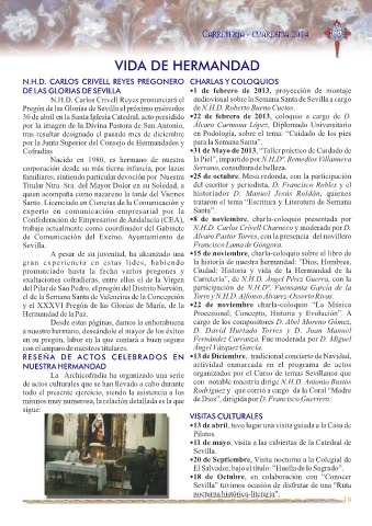 exaltaciones cofradieras, entre ellos el de la Virgen Carretería”, de N.H.D. Ángel Pérez Guerra, con la