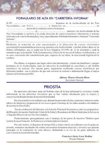 referentes a la vida de Hermandad y muy especialmente el Boletín Informativo Semanal “Carretería