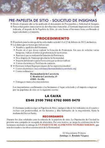 Durante los días señalados para la retirada de la papeleta de sitio, La Diputación de Caridad ha
