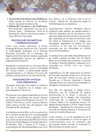CASA-HERMANDAD Hermano Mayor así como al descubrimiento de