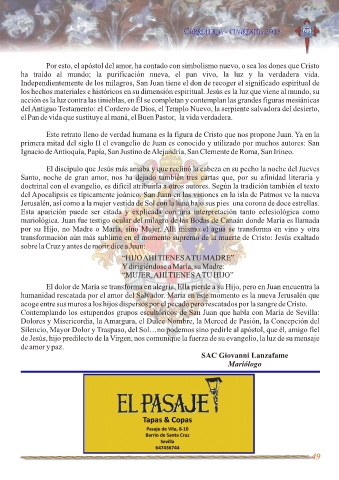 del Apocalipsis es típicamente joánico. San Juan en las visiones en la isla de Patmos ve la nueva