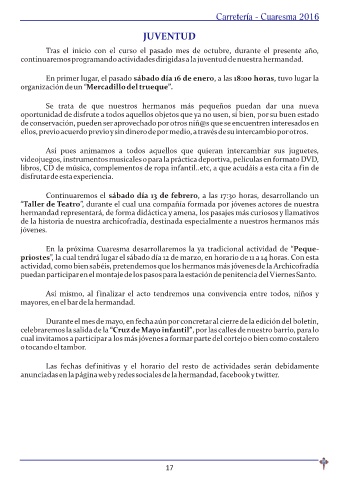 actividad, como bien sabéis, pretendemos que los hermanos más jóvenes de la Archicofradía