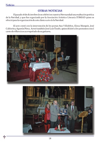 El pasado 18 de diciembre de se celebró en nuestra Hermandad una exaltación poética