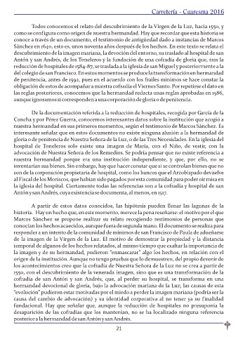 los acontecimientos creo que la cofradía de Nuestra Señora de la Luz no se crea a partir de
