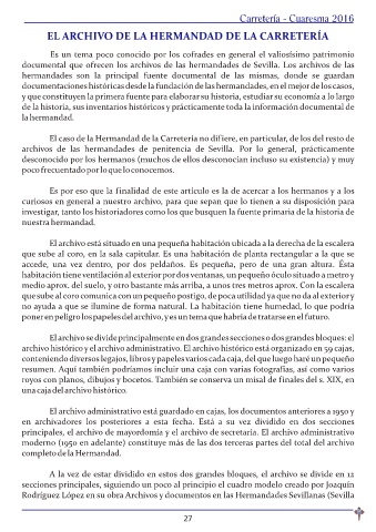 EL ARCHIVO DE LA HERMANDAD DE LA CARRETERÍA