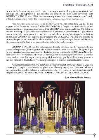 soporta sobre las sienes nuestro Titular. Una CORONA a la que podemos asirnos en esa