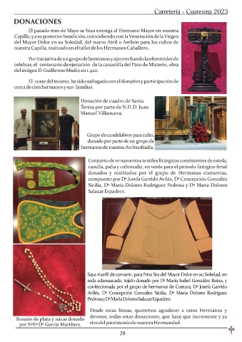 Rosario de plata y nácar donado por NªHªDª García Martínez.