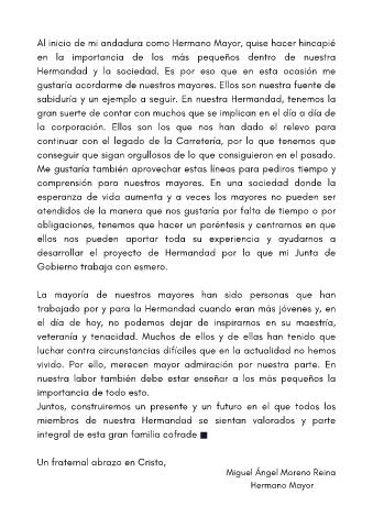 Al inicio de mi andadura como Hermano Mayor, quise hacer hincapié