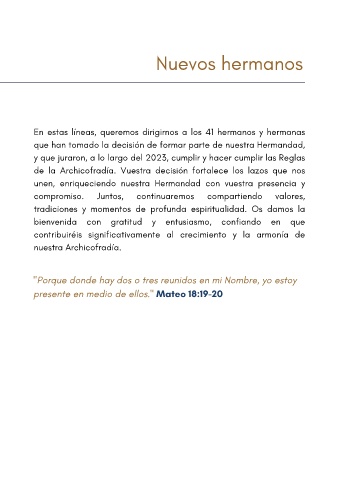 de la Archicofradía. Vuestra decisión fortalece los lazos que nos