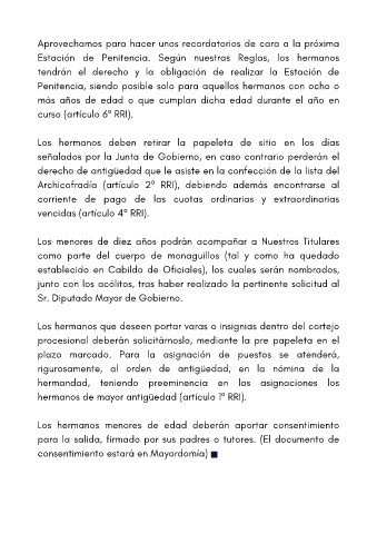 Estación de Penitencia. Según nuestras Reglas, los hermanos