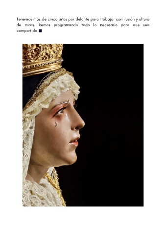 Tenemos más de cinco años por delante para trabajar con ilusión y altura de miras. Iremos programando todo lo necesario para que sea compartido.