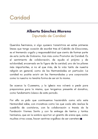 de esta Junta de Gobierno. Aún más como Promotor de Caridad. Es